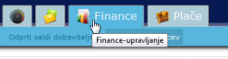 S klikom na zavihek Finance se odpre seznam odprtih saldov kupcev ali seznam odprtih saldov dobaviteljev.
